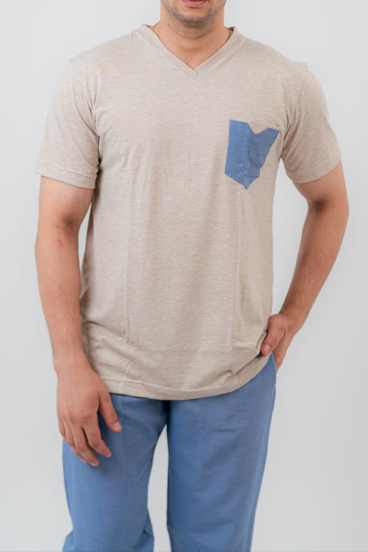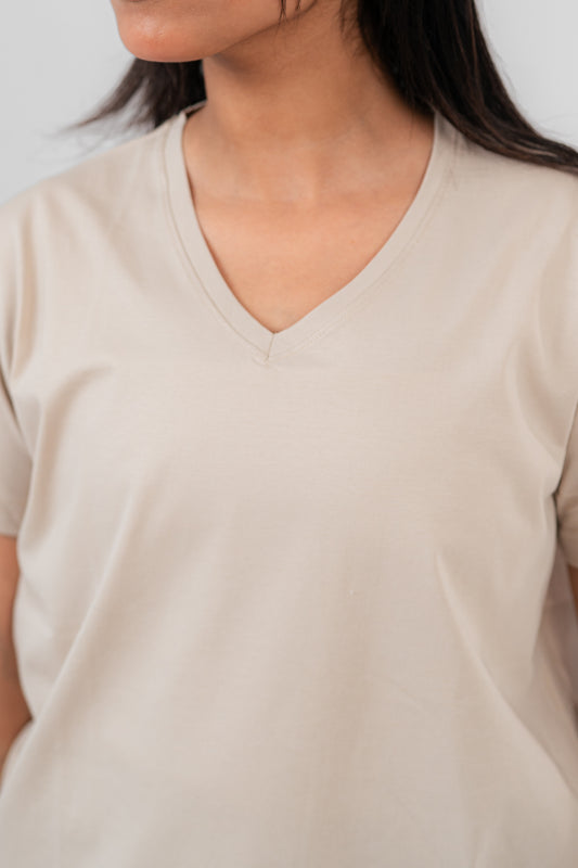 Beige Oversize V-Neck T-shirt