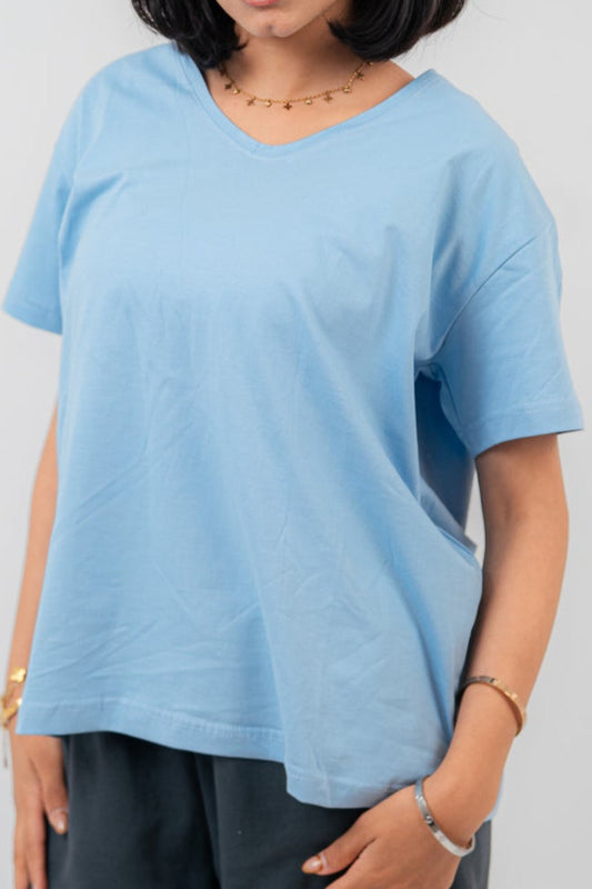 Baby Blue Oversize V-Neck T-shirt