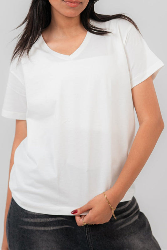 White Oversize V-Neck T-shirt
